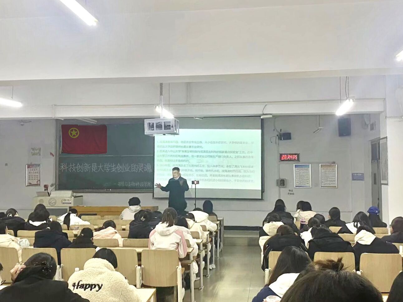 首先,余老师以“农科学子创业的‘破局点’在哪里”为核心问题展开,结合公司农学专业科研团队的真实案例——依托物联网技术研发“智能温室环境监测系统”,通过实时采集温湿度、光照等数据实现作物生长精准调控,详细拆解技术创新如何解决传统农业“靠天吃饭”、“管理粗放”的痛点,直观阐释“技术创新是农业创业核心竞争力”的观点。同时,余老师还展示了公司近年在作物抗病育种、农产品精深加工等领域的科创成果,从实验室技术到田间应用的转化过程,让同学们清晰看到“专业技术+创新思维”的创业落地路径。